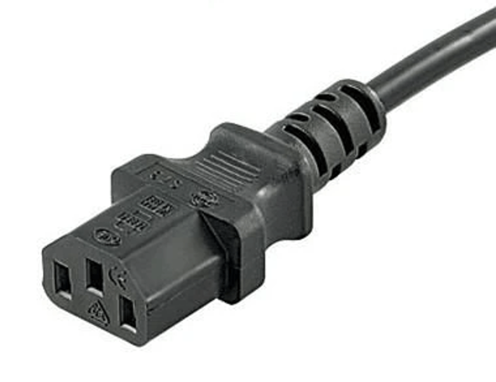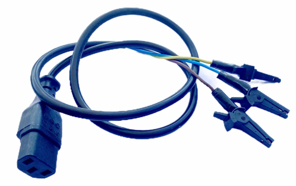De testingang op de tester is vrijwel altijd een IEC-apparatensnoer. Dat is een snoer met een IEC-contrastekker die in de IEC-contactdoos van de tester past.